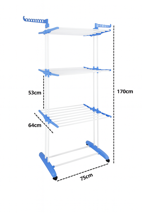 Optimizá el espacio de tu hogar con este tender plegable de 3 niveles, ideal para secar y organizar tu ropa de manera cómoda, ordenada y sin ocupar demasiado lugar. Su diseño vertical y compacto lo convierte en la opción perfecta para ambientes reducidos como balcones, lavaderos o departamentos.